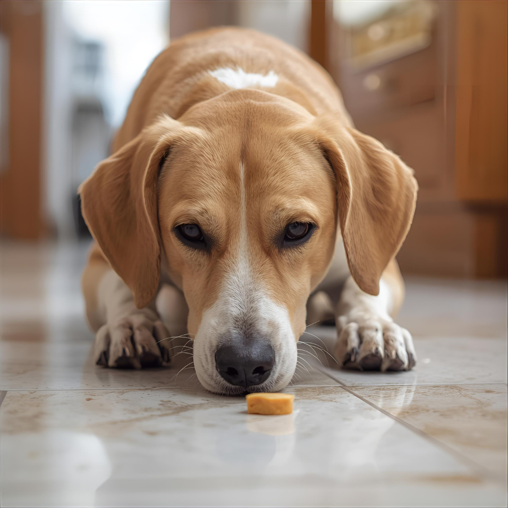 Start simple: Show your dog a treat, place it on the floor, and say, “Find it.”